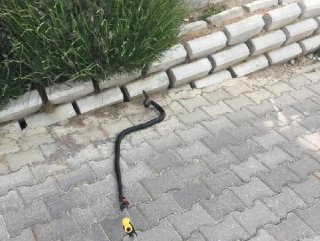 Boyu 1 metreden uzun olan yılan, kullanılan özel ekipmanla yakalandı. Yılanı fileye koyan itfaiyeciler, dağlık alana götürerek, doğaya saldı.