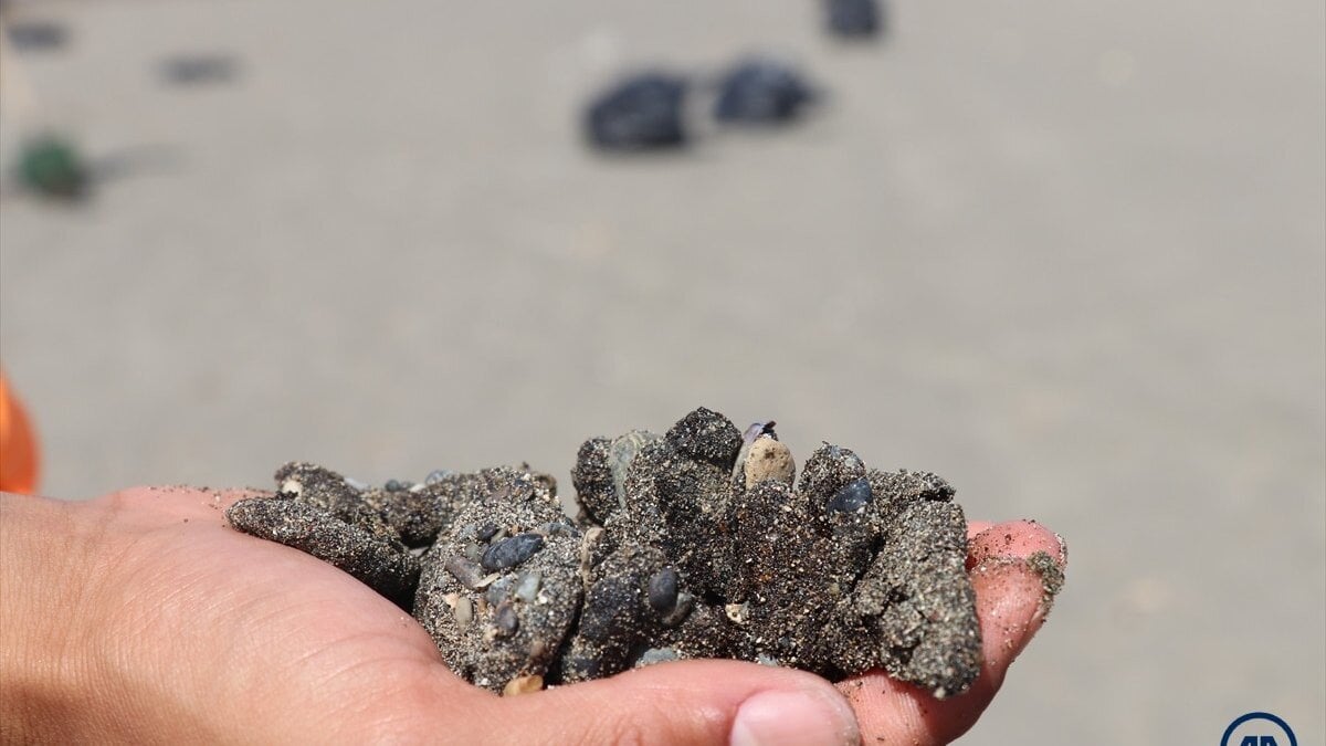 Çevre ve Şehircilik İl Müdürlüğü ekipleri, Hatay'ın Samandağ ilçesi sahillerindeki Suriye kaynaklı petrol sızıntısının neden olduğu kirliliğe yönelik temizlik çalışmalarını sürdürüyor.