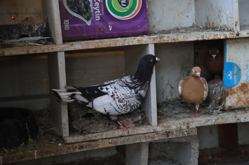 Ben 13 yıldır hobi olarak güvercin besliyorum. İşten geldikten sonra gelip burada kuşlarımı yemliyorum ve bakımlarını yapıyorum. Yaklaşık 80 güvercinim var. Güvercinlerim de çifti ve tekli olarak ikiye ayrılıyor.