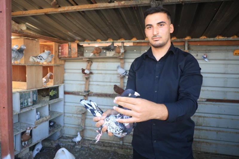Güvercinlerle ilgilenmeyi seven Toman, yaklaşık 80 güvercinin her birinin bakımını ve beslemesini yapıyor.