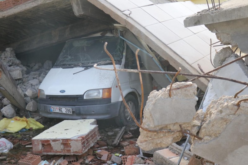 Hatay'ın Hassa ilçesinde yaşadığı evi yıkılan depremzede, minibüs ve traktörü sayesinde betonların altında kalmaktan kurtulduklarını anlattı.