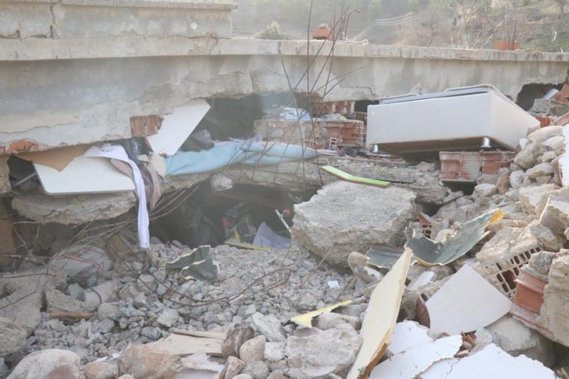 Betonlar alt kattaki depoda duran minibüs ile traktörün üzerine düşünce bir yaşam alanı oluştu ve ailesi ile birlikte hayatta kaldı.