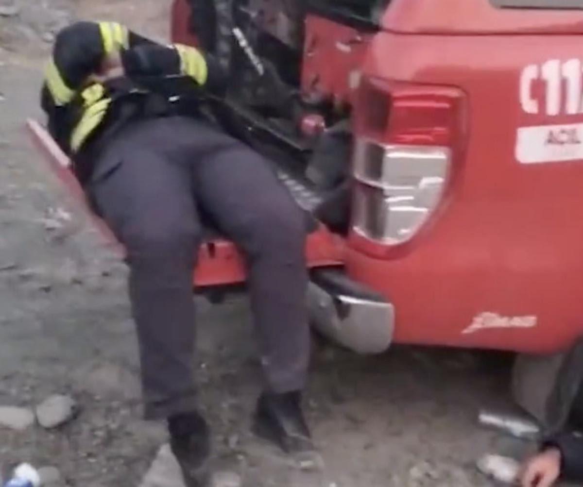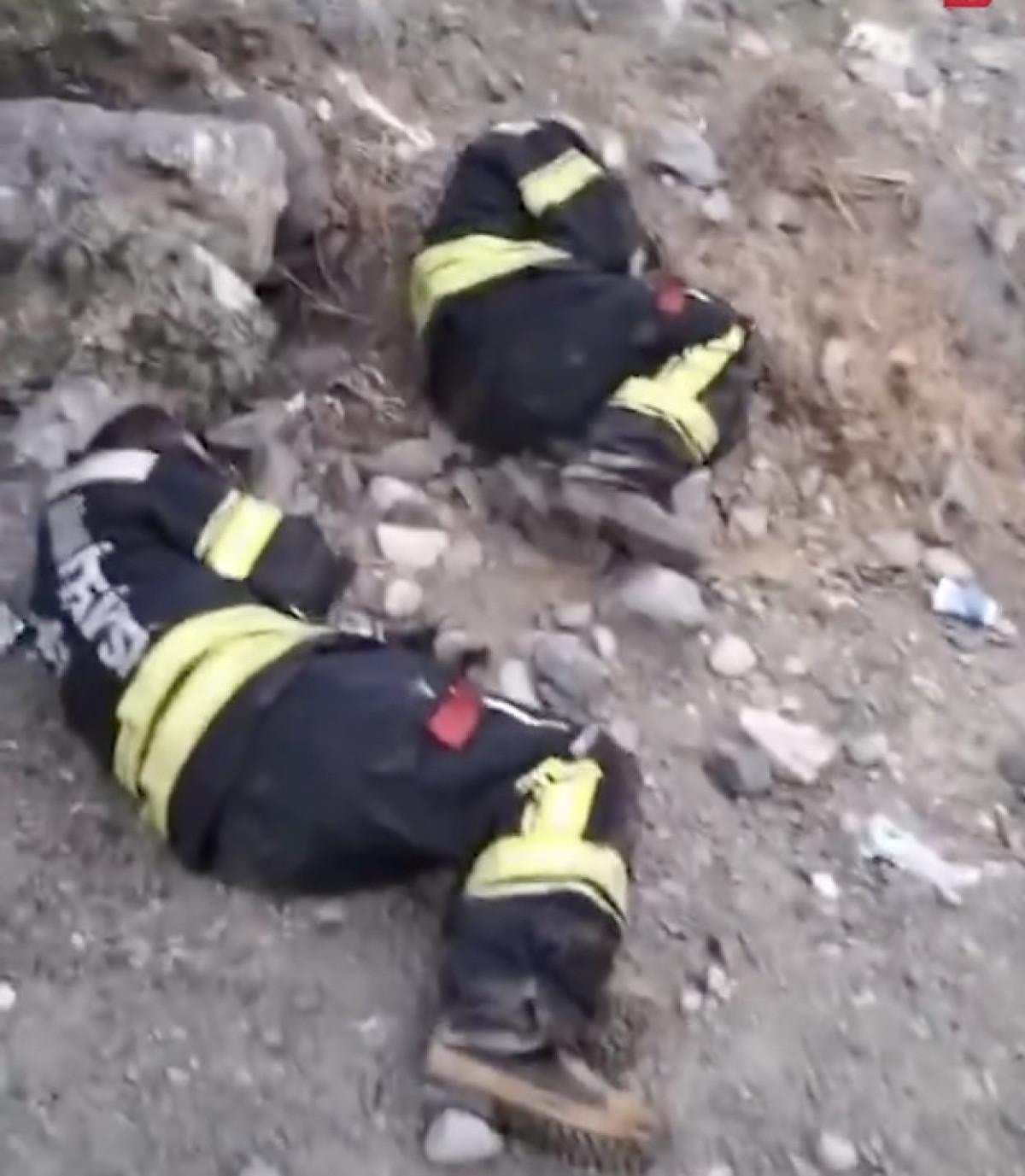 Yangında gece, gündüz mücadele eden ekipler, zaman zaman yorgun düştüğü anlarda yerde ve araçlarının bagaj kapaklarında uyuyup dinlenmeye çalışıyor.