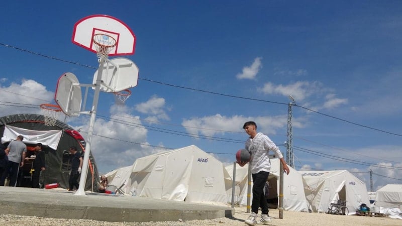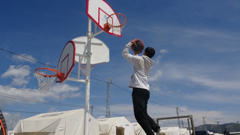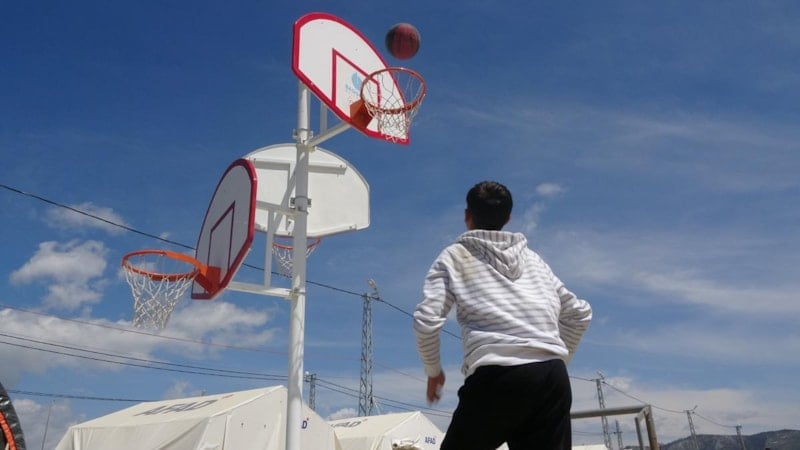 Kendi talebi üzerine çadır kente, antrenman yapabilmesi için basketbol potası yerleştirildi.