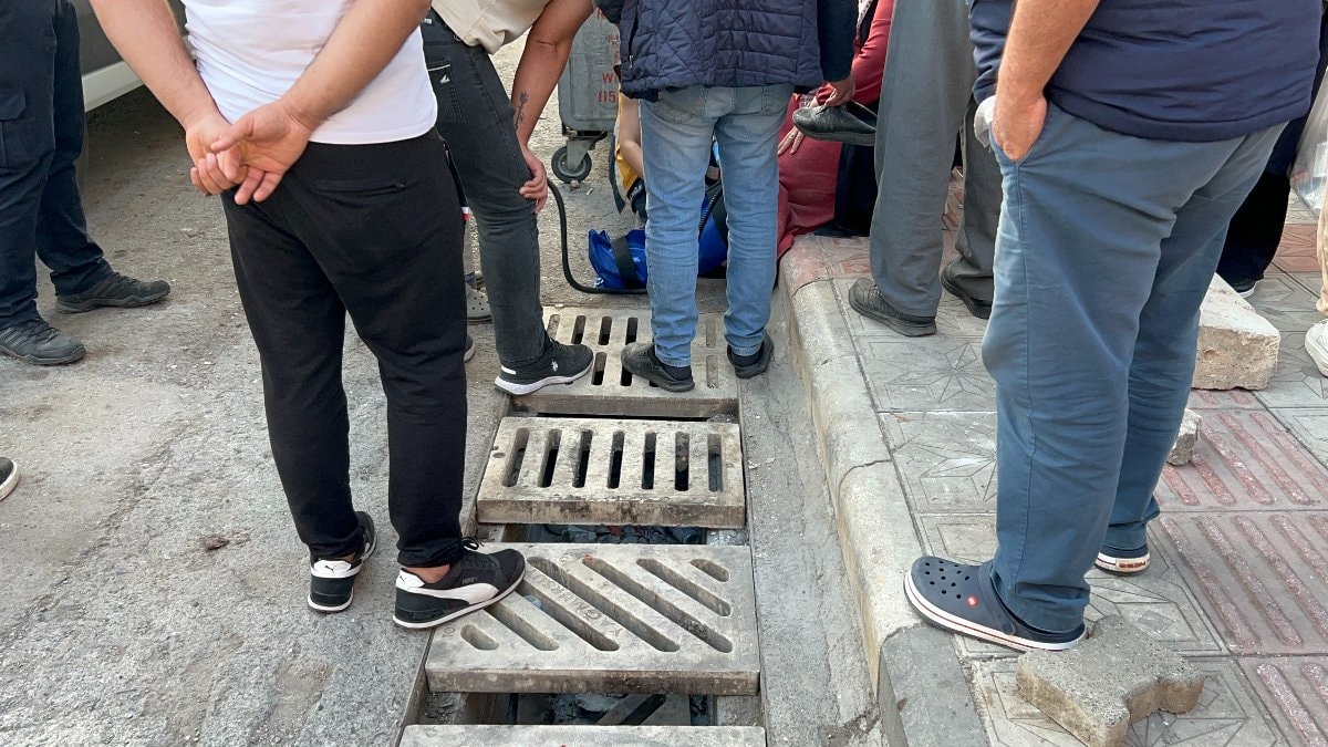 Kadının ayağı, yağmur suyu mazgalına sıkıştı.
