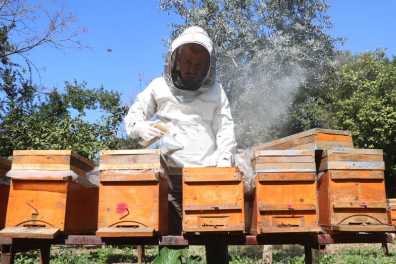 Arıların çiçekteki polen gıdasına erken ulaşmaya başlamasıyla birlikte koloni sayılarının hızla gelişeceğine dikkat çeken Akyüz, “Bu yıl bol yağmurlu, çok soğuk olmayan bir kış mevsimi yaşadık. Bahar çiçekleri bu sene erken açtı. Bahar çiçeklerinin erken açmasıyla beraber arıların ve yavruların ihtiyacı olan polene ulaşması daha erken bir vakitte oldu. Bol yağmurların yağması bizim için avantaj oldu. Arılar erken çalışmaya başladılar. Yavru faaliyetine erken girdiler, polenin gelişiyle beraber.