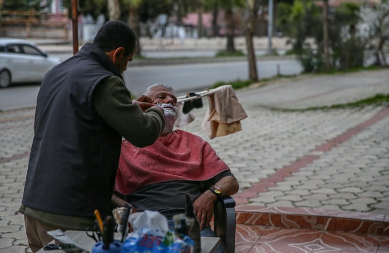 "İçeride faaliyet yapamıyoruz, müşteriler de baya sıkıştırdı. İnsanlar tıraş olmak istiyor, temizlik istiyor, hijyen istiyor. Ondan dolayı aklımıza böyle bir şey geldi. Koltuğu dışarı aldık. O şekilde faaliyete yapmaya çalışıyoruz. Birkaç gündür bu şekilde hizmet veriyoruz."