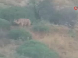 Kayalık alanda çizgili sırtlanı sıkıştıran kişiler, yanlarındaki 4 çoban köpeğini üzerine saldı. Köpeklerin saldırısıyla kanlar içinde kalan çizgili sırtlan, telef oldu.