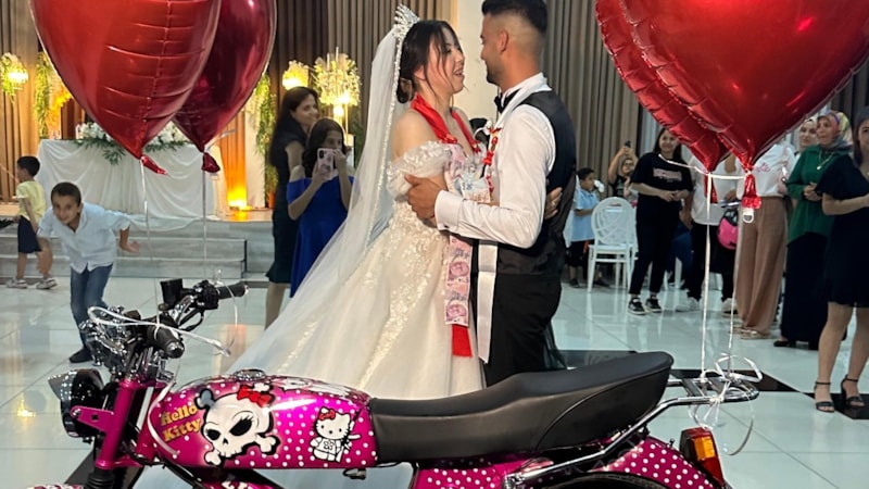 Gelin Türker'in motosiklete sarılması ve çalıştırıp gaza basması renkli görüntülere sahne oldu. Türker çifti, yaşadıkları mutlulukları dile getirdi.