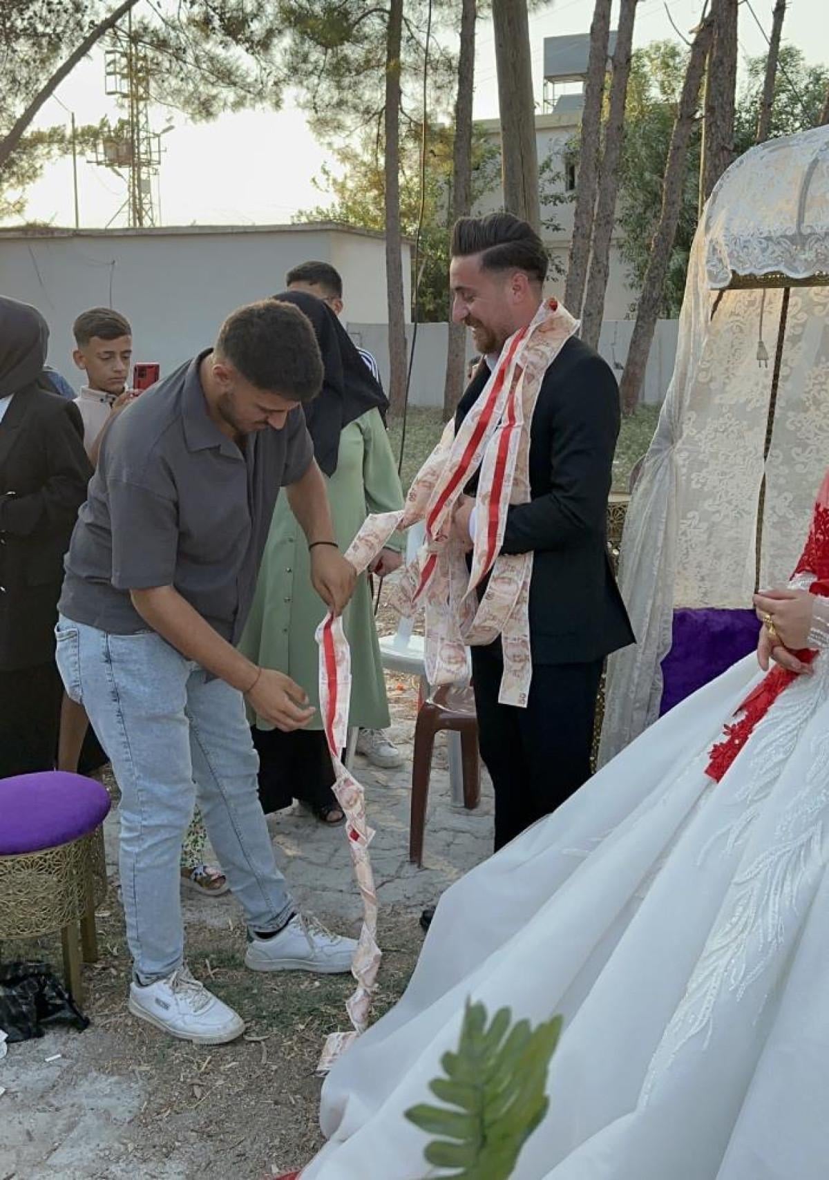 Kurdele üzerindeki takının takılmasıysa Nure çiftinin ve düğüne katılanların şaşkınlığı arasında dakikalarca sürdü.