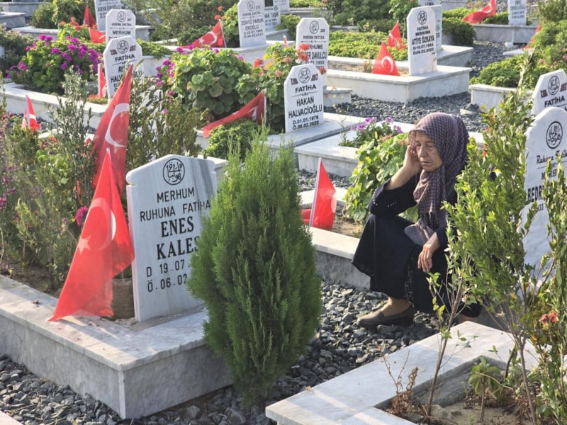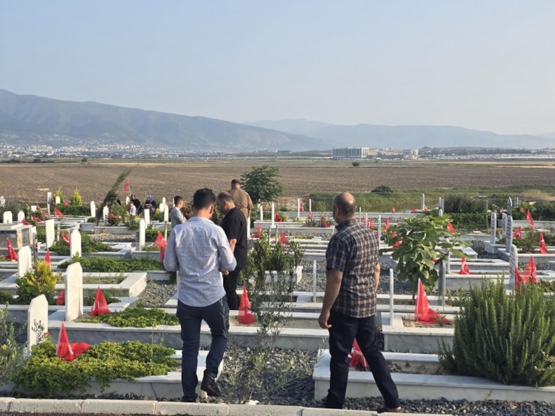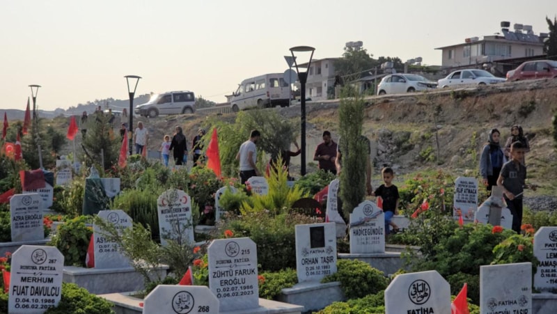 Kurban Bayramı'nın ilk gününde, Hatay'ın Antakya ilçesi Narlıca Mahallesi'ndeki deprem şehitliği yakınlarını kaybedenlerle dolup, taştı.