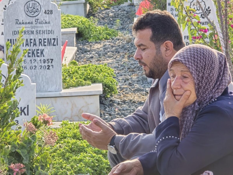 Depremde eşini ve 3 çocuğunu kaybeden Mehmet Keleş, “Rabbim nasip ederse, cennette buluşacağız. Duygularımız hala aynı. İlk günkü özlemle buraya geliyoruz." diye konuştu.