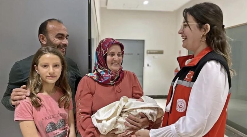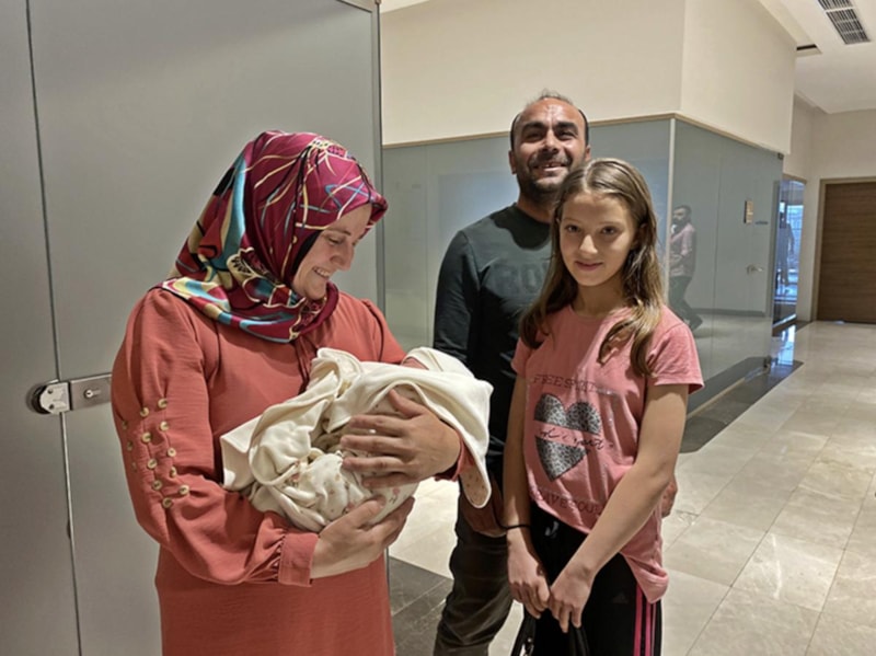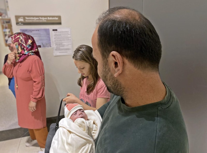Deprem olduğunda ben Antalya'daydım, ailem ise Hatay'daydı. Çok şükür, eşim ve 2 çocuğum evden yara almadan çıkabildi. Şu an çocuğumuzu buradan alıyoruz. Mutluyuz, huzurluyuz. Bebeğimizde çok büyük değişiklik var. En son gördüğümüzde çok küçüktü, şu an çok iyi, sağlıklı. Hastane personeline bebeğimize iyi baktıkları için teşekkür ediyoruz.