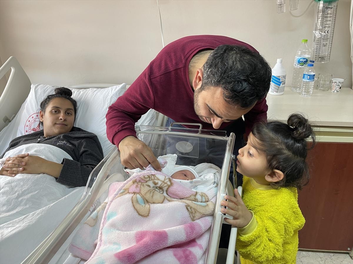 Depremde büyük korku yaşadıklarını, yıkılan evlerinden sağ kurtulduklarını belirten Topaloğlu, "Sağlıklı bir şekilde kızımı dünyaya getirdim. Hem mutluyuz hem üzüntülüyüz." dedi.