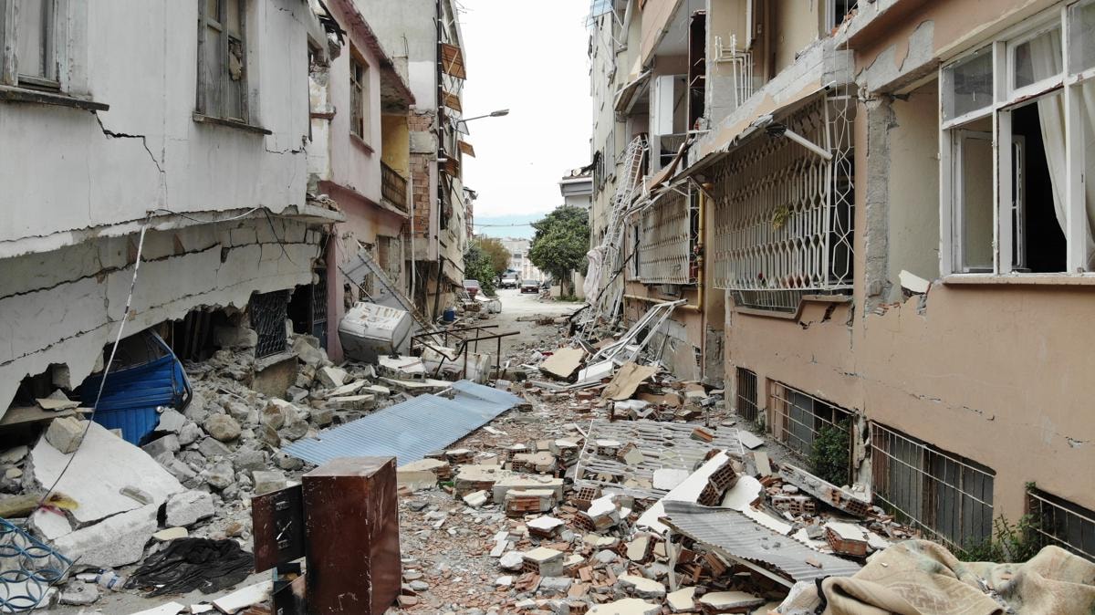 5 bin 200’e yakın nüfusumuz vardı. 2019’da 4 bin, 4 bin 200’e yakın seçmenimiz vardı. Seçmen listeleri şu an askıda 3 bine kadar düşmüşüz. İl dışına çıkanlar var, kırsala gidenler var. Binin üzerinde ölümüz var. Bin 100 metrelik bu cadde üzerinde 204 kişi vefat etti. Az hasarlı 3-4 bina dışında hiçbir şey kalmadı. Hepsi yıkılacak.