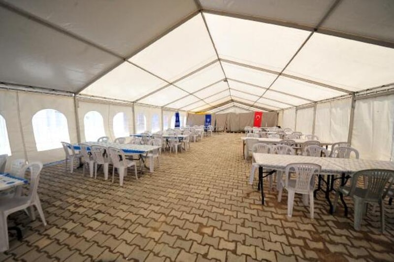 Kente hurma gibi Ramazan ayına özel yiyecekler getirildi. İftar ve sahurun hazırlanacağı mutfak görüntülenirken, çadırların Ramazan ayının ilk günü itibariyle faaliyete geçeceği bildirildi.