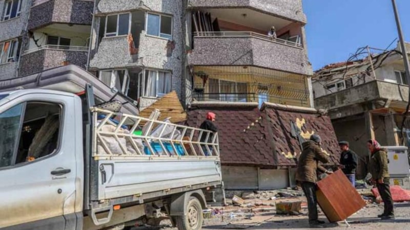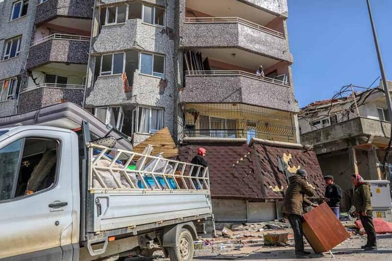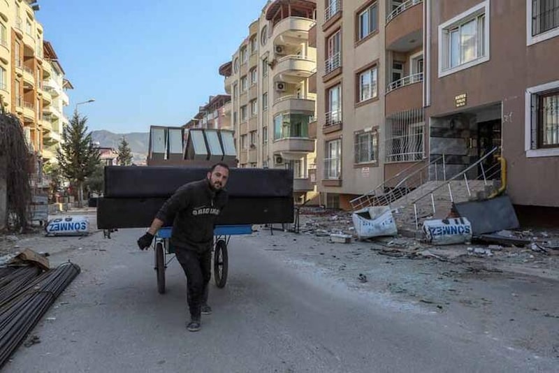 Antakya'da yaşayan Niyazi Bozoğlan, kızının depremde hasar alan evini boşaltırken, Galip Topuz ise 2 ay sonra doğmasını bekledikleri çocuğu için hazırladığı eşyaları, yan yatan evinden aldı.