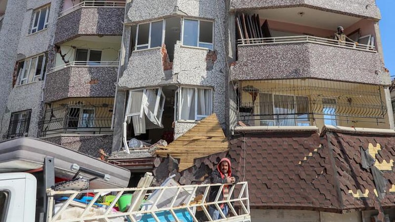 Kızım bu evde oturuyor. Deprem olduktan sonra damadımı evden zor çıkardık. Onları Marmaris'e gönderdik. Şimdi de evden ne kurtarabilirsek kurtarmaya çalışıyoruz. İçeride duvarlar patlamış ama herhalde bina yıkılacak. Çok tehlikeli ama ne yapacaksın canlarını, emeklerini vermişler; 30 yıllık emekle bu evi aldılar. O da yıkıldı, hiçbir şey kalmadı. Sandalye, masa, yatak almaya çalışıyoruz en azından başka bir yerde barınmaları için.
