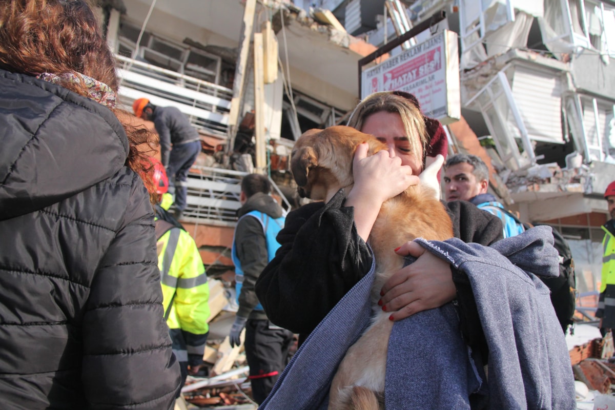 Bugün arama yaptıkları sırada yavru bir köpeğin sesini duyan ekipler, onun da canını kurtarmak için harekete geçti.