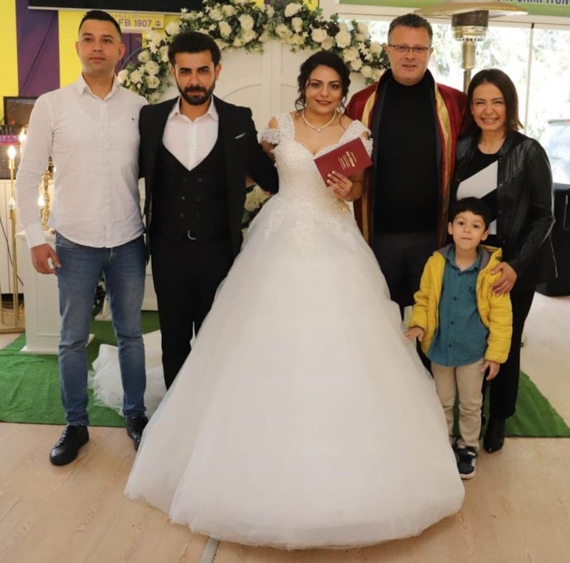 Cumhuriyet Parkı Fenerbahçeliler Derneği Lokali’nde kıyılan nikahta, damadı Antakya’da kaldığı enkazın altından 36 saat sonra kurtaran gönüllü polis memuru Emir Bestami Demirtaş ve Alaşehir'e geldikleri günden beri kendileriyle sürekli irtibat halinde olan ve ilgilenen Alaşehir Belediye Başkanı Ahmet Öküzcüoğlu’nun eşi Selen Öküzcüoğlu nikah şahitliğini yaptı.