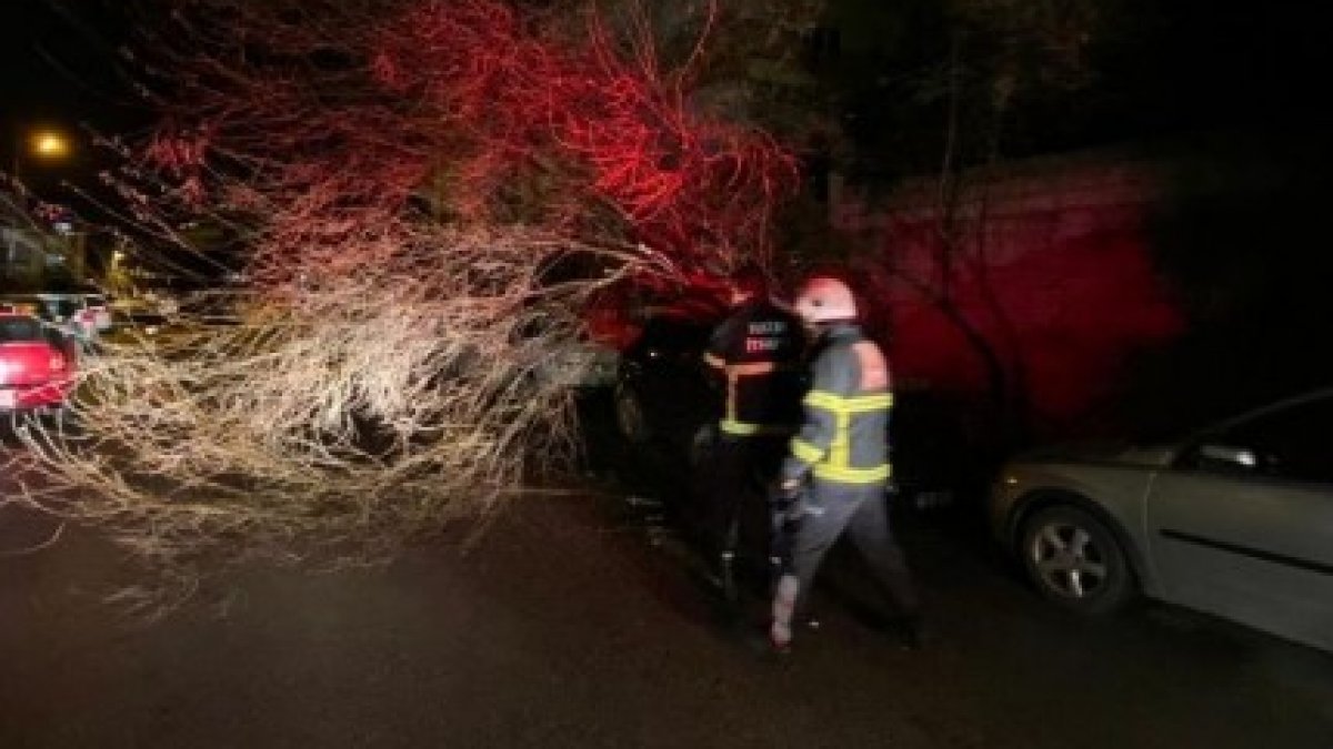 Defne ilçesinde de etkisini devam ettiren fırtınada devrilen ağaçlar, vatandaşların arabasına zarar verdi.