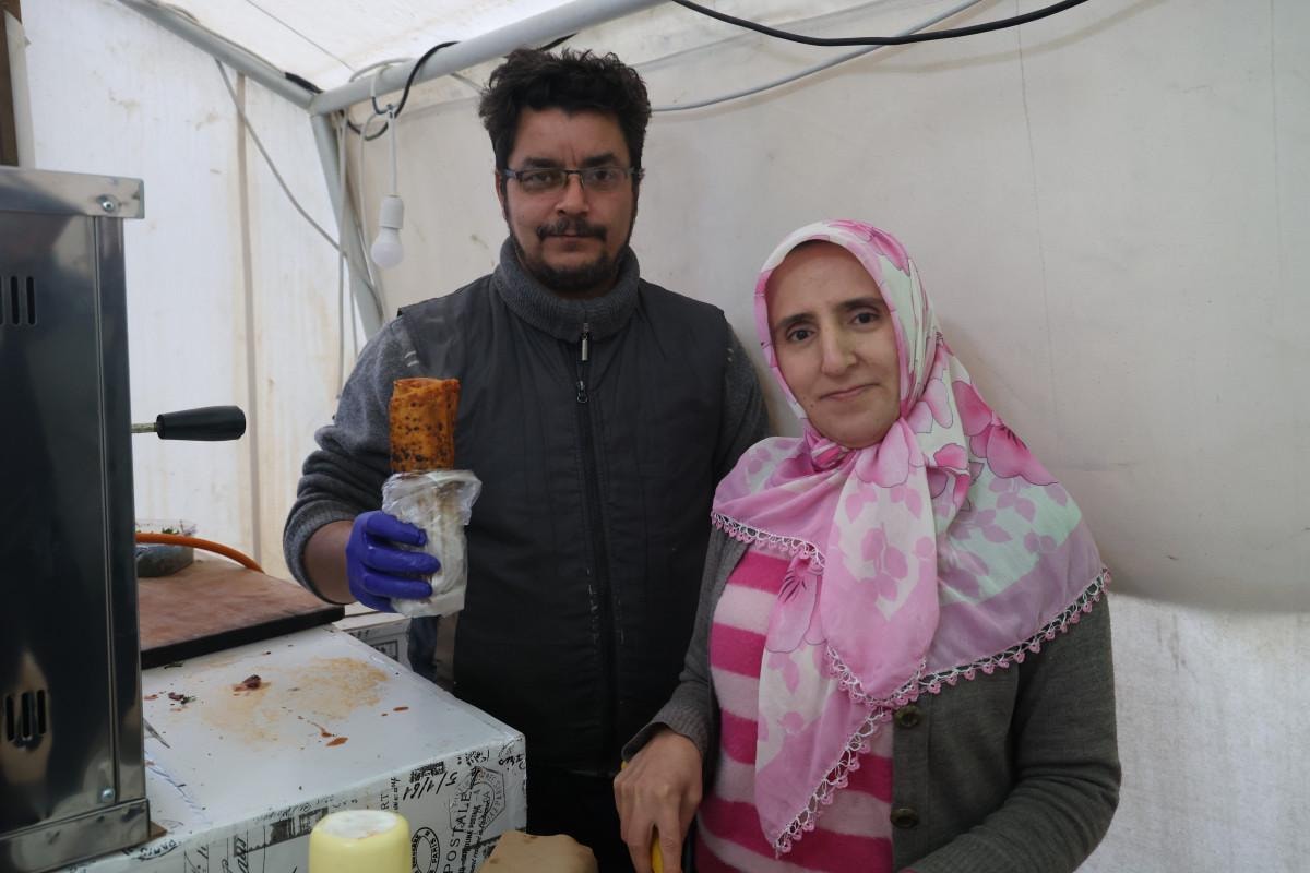 Depremde Kodalak Ailesi'ne ev olan çadırda iki aydır köftecilik yapan baba Kodalak, çadırda 16 yıllık eşiyle birlikte köfte satarak hayata tutunmaya çalışıyor.
