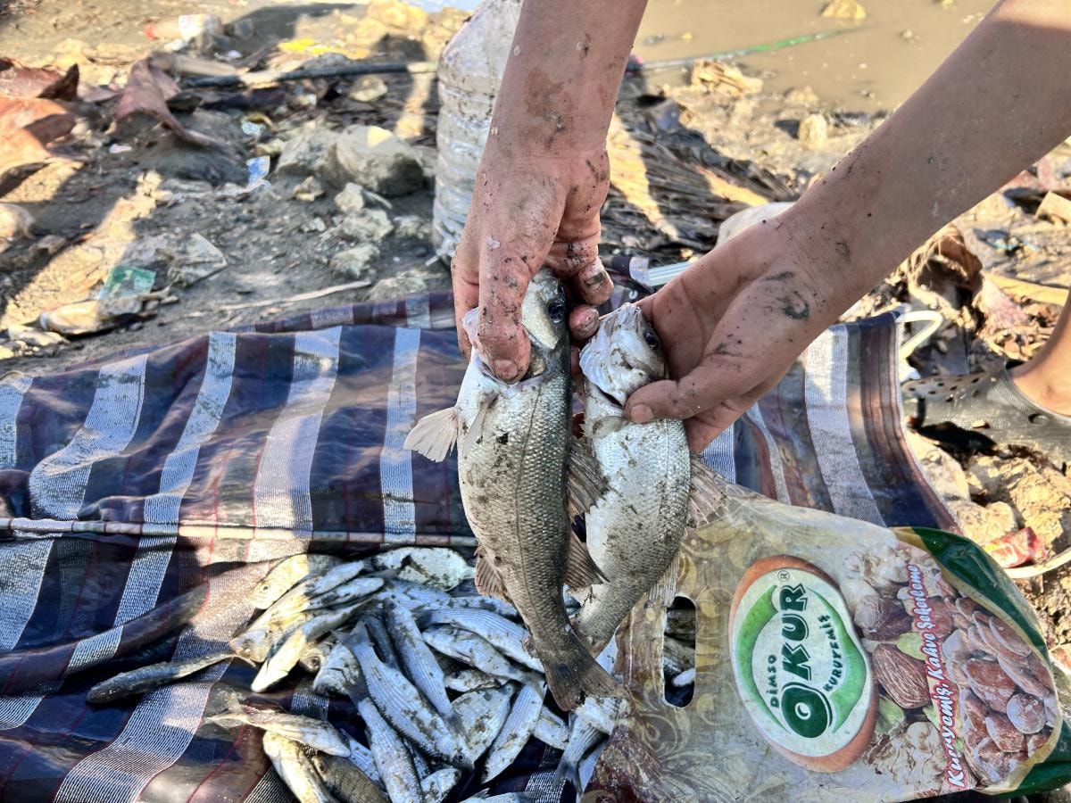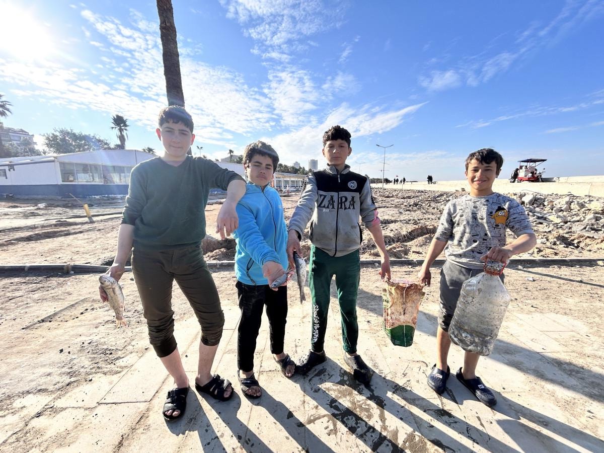 Nasıl balık tuttuğunu anlatan 15 yaşındaki Muhammed Yasin, “Biz bu perdeyi evden getirdik balık yakalamak için. Toplamda 3-4 kilogram balık yakaladık. Burası depremden önce taşmıştı bu balıklar o zaman gelmiş bu kanala ve akşam bu balıkları pişirip yiyeceğiz” dedi.