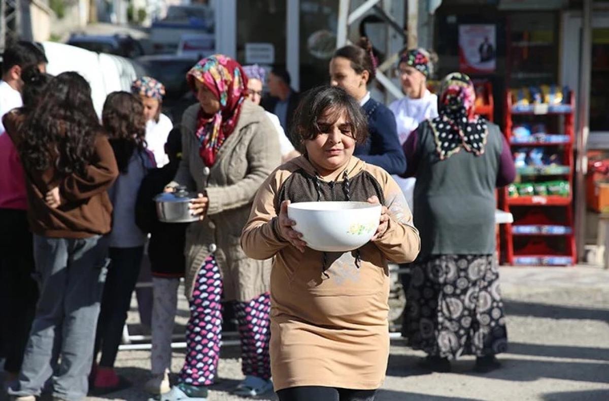 Hazırlanan yemekler, ilçedeki depremzedelere ulaştırılıyor.