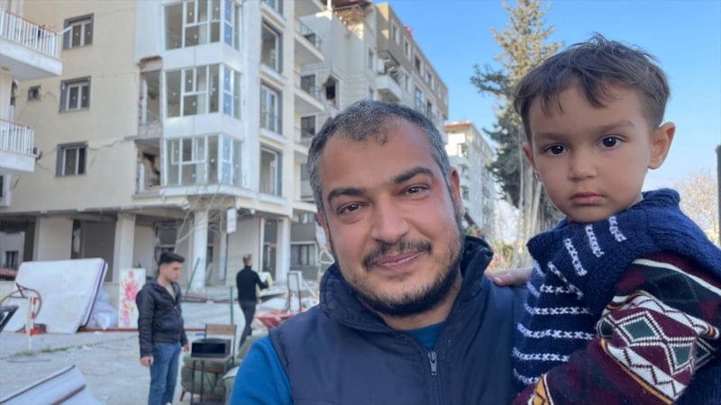 Odabaşı Mahallesi'nde çevresindeki 2 binanın yıkıldığı 5 katlı apartmanın 4'üncü katındaki eşyaların çıkaran Mithat Çolak, deprem gecesi büyük korku yaşadıklarını söyledi.