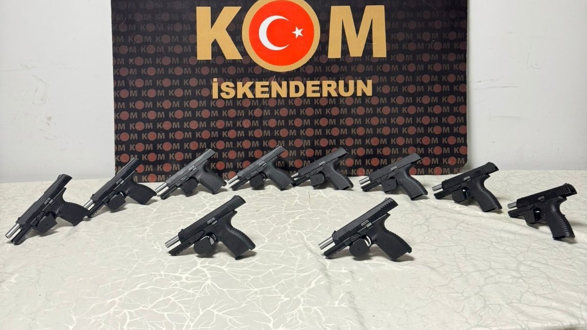 Polis ekiplerinin detaylı aramasında aracın çeşitli yerlerine saklanmış; 10 adet ruhsatsız tabanca ve 10 adet şarjör ele geçirildi.