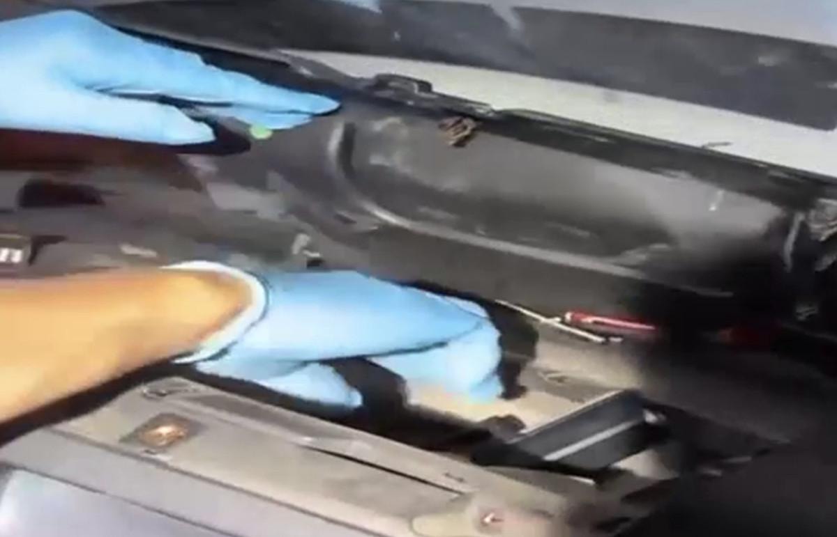 Aracın motor kısmına saklanan silahların yer aldığı bölümse dikkat çekti.