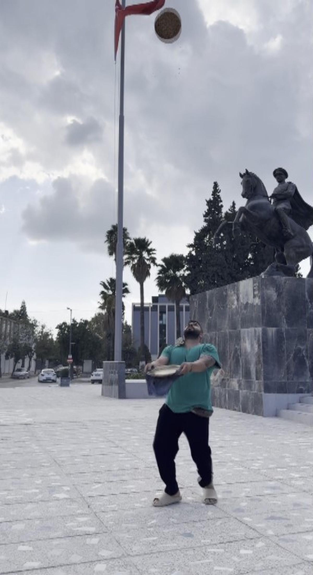 Künefeye havada 10 takla attırmayı başaran Nuri Usta, bu anlarıysa sosyal medyada paylaştı.