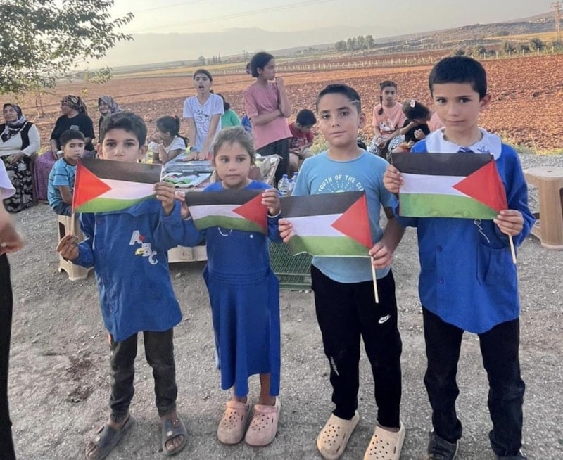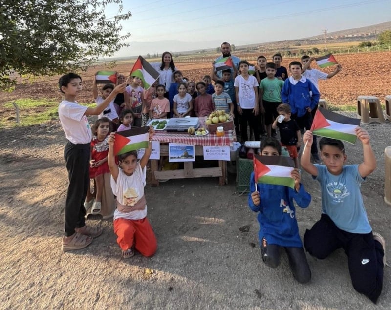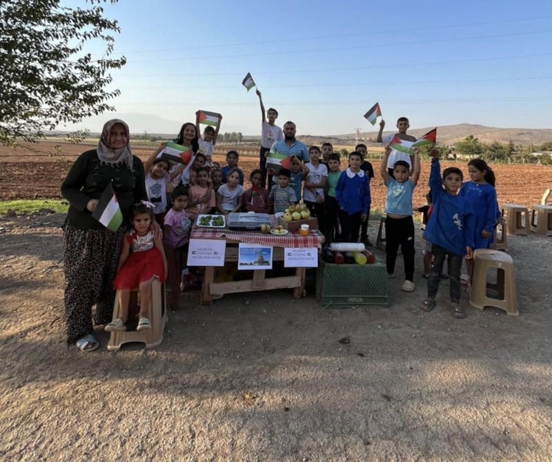Hatay'ın Kırıkhan ilçesi İncirli Mahallesi’nde görev yapan öğretmen Melahat Ayaz ile cami imamı Mustafa Demir, Filistin'in Gazze şehrinde zalim İsrail'in saldırılarına uğrayan insanlar için yürekleri ısıtan etkinlik düzenlendi.