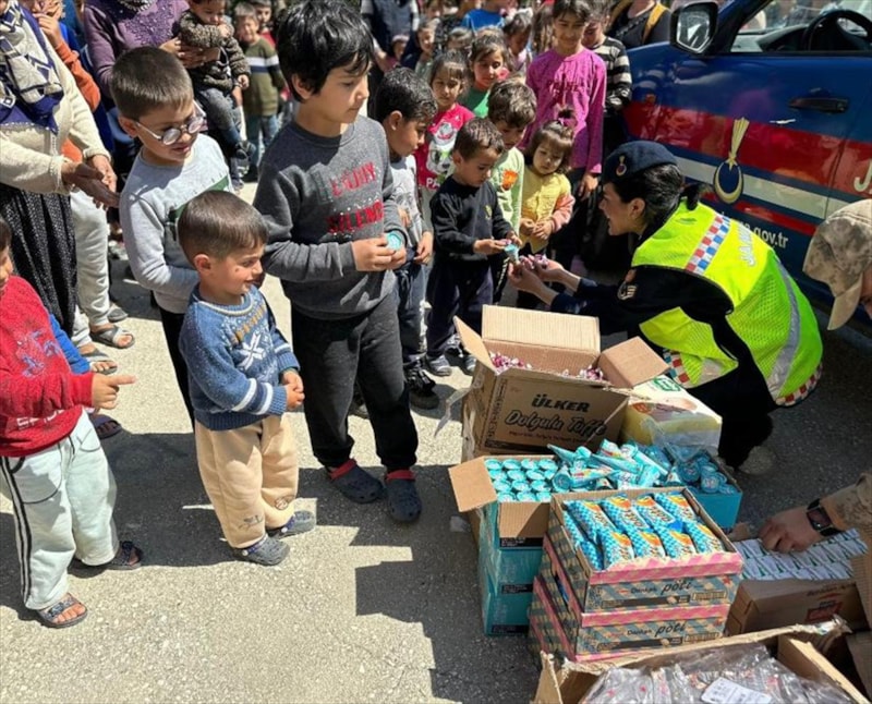 İl Jandarma Komutanlığı ekipleri, depremzede çocuklara bayramlık ve oyuncak hediye etti.