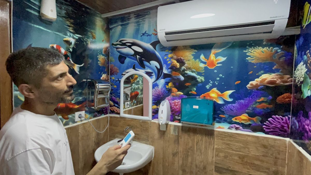 Yıllardır bici bici yapıyoruz, önceden seyyar çalışıyorduk. İş yerimiz ahşap olduğu için sıcakları daha çok çekiyordu. Müşterilerimiz kan ter içinde çıkıyordu, bu da zoruma gidiyordu. Sonunda tuvalete klima taktırmaya karar verdim.