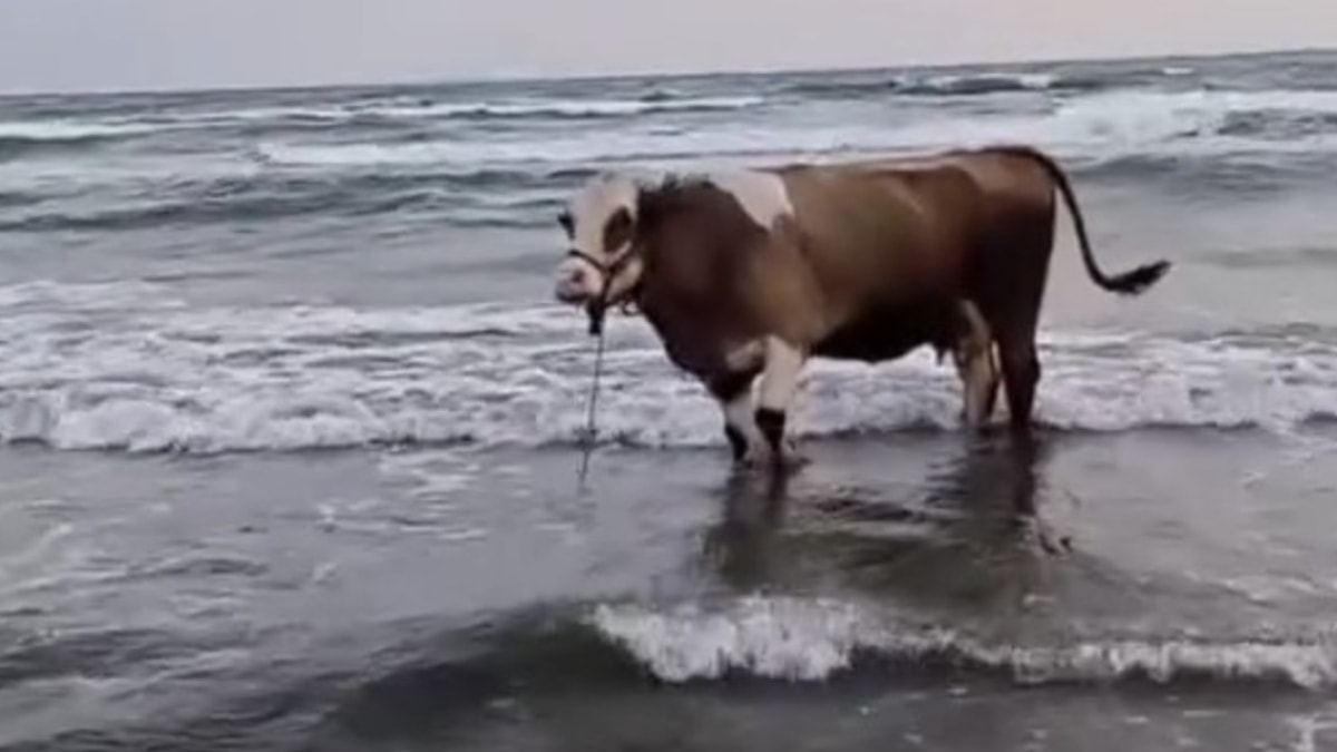 Bir süre boyunca denizde gezinen ineğin o anları sosyal medyada ilgi odağı olurken, bir süre sonra hayvan sahibi tarafından denizden çıkarıldı.