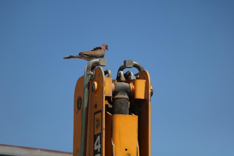 Hatay'ın Antakya ilçesinde hafriyatçılık yaparak ekmek parasını kazanan Bülent Kuyucu'nun Narlıca Mahallesi'nde park halinde bulunan kepçesinin bomunun üzerine kumru yuva yaptı.