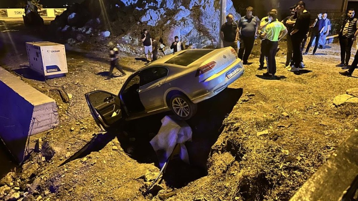 Sürücüsünün navigasyon yardımıyla Arsuz ilçesine gitmek istediği otomobil, Pirireis Mahallesi'nde depremde hasar alan ve yıkımı yapılan bina arazisine uçtu.