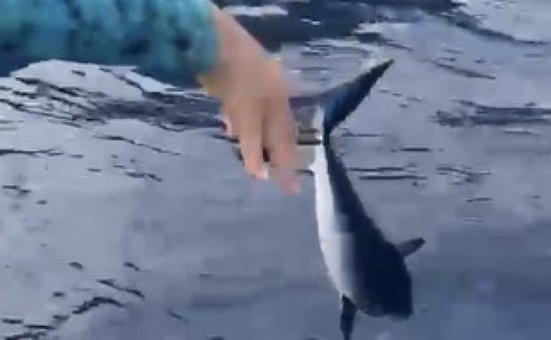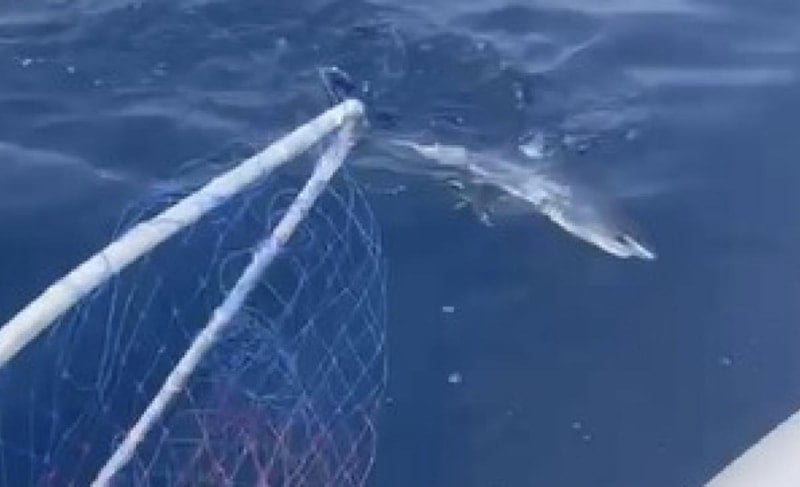 Yavru köpekbalığını kancadan kurtaran Yöndem, "Bir daha oltamıza gelme. Herkes bizim kadar vicdanlı olmayabilir" diyerek nasihat da bulundu ve köpekbalığını denize bıraktı.