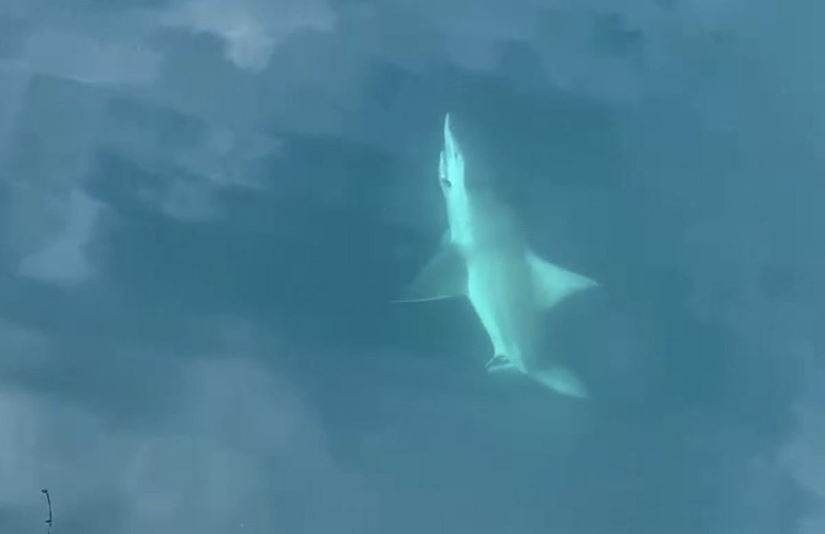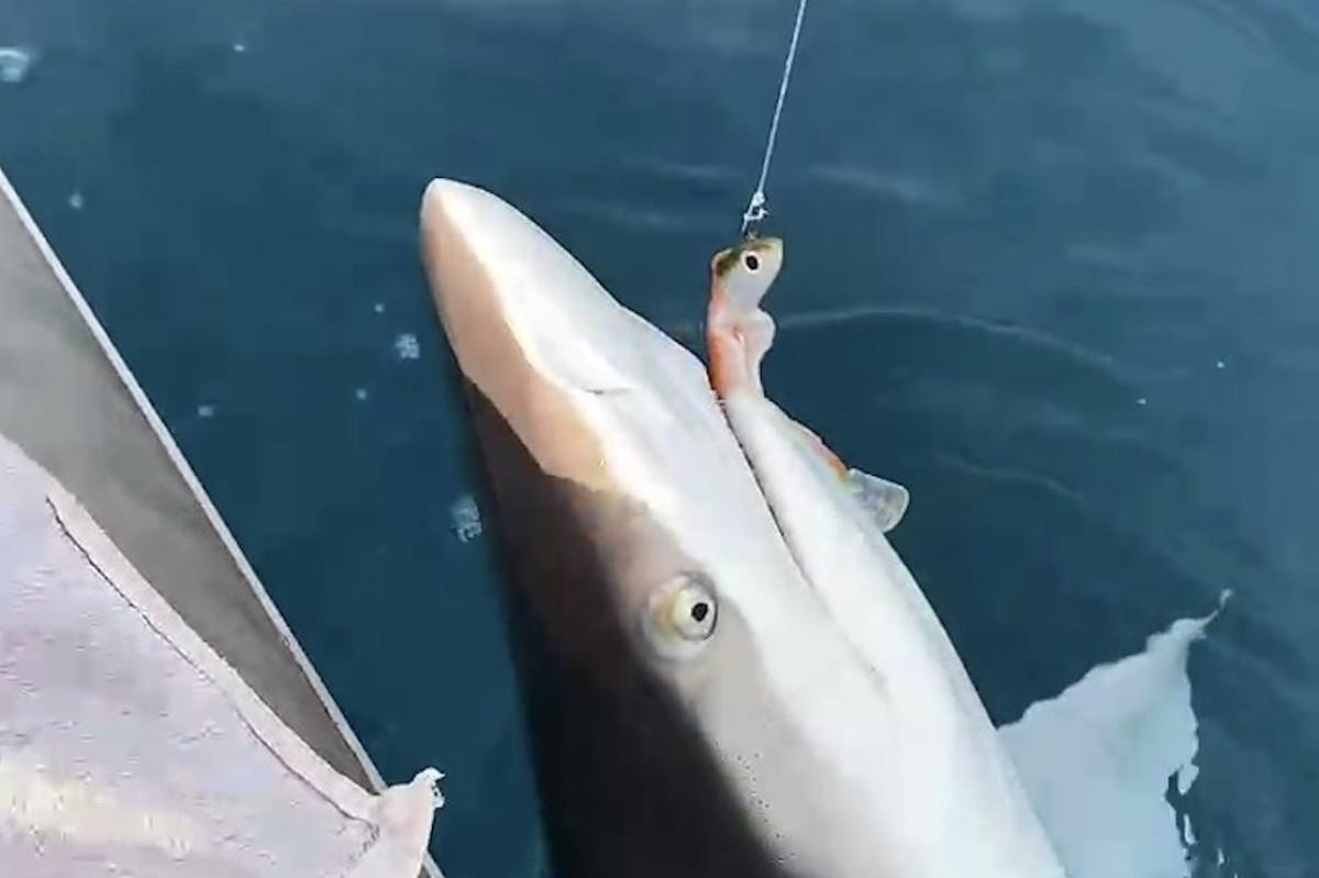 Köpek balığını fark eden Bayar, korku içerisinde zarar vermemek için bir süre hayvanın ağzındaki kancayı çıkartmak için çaba harcadı.