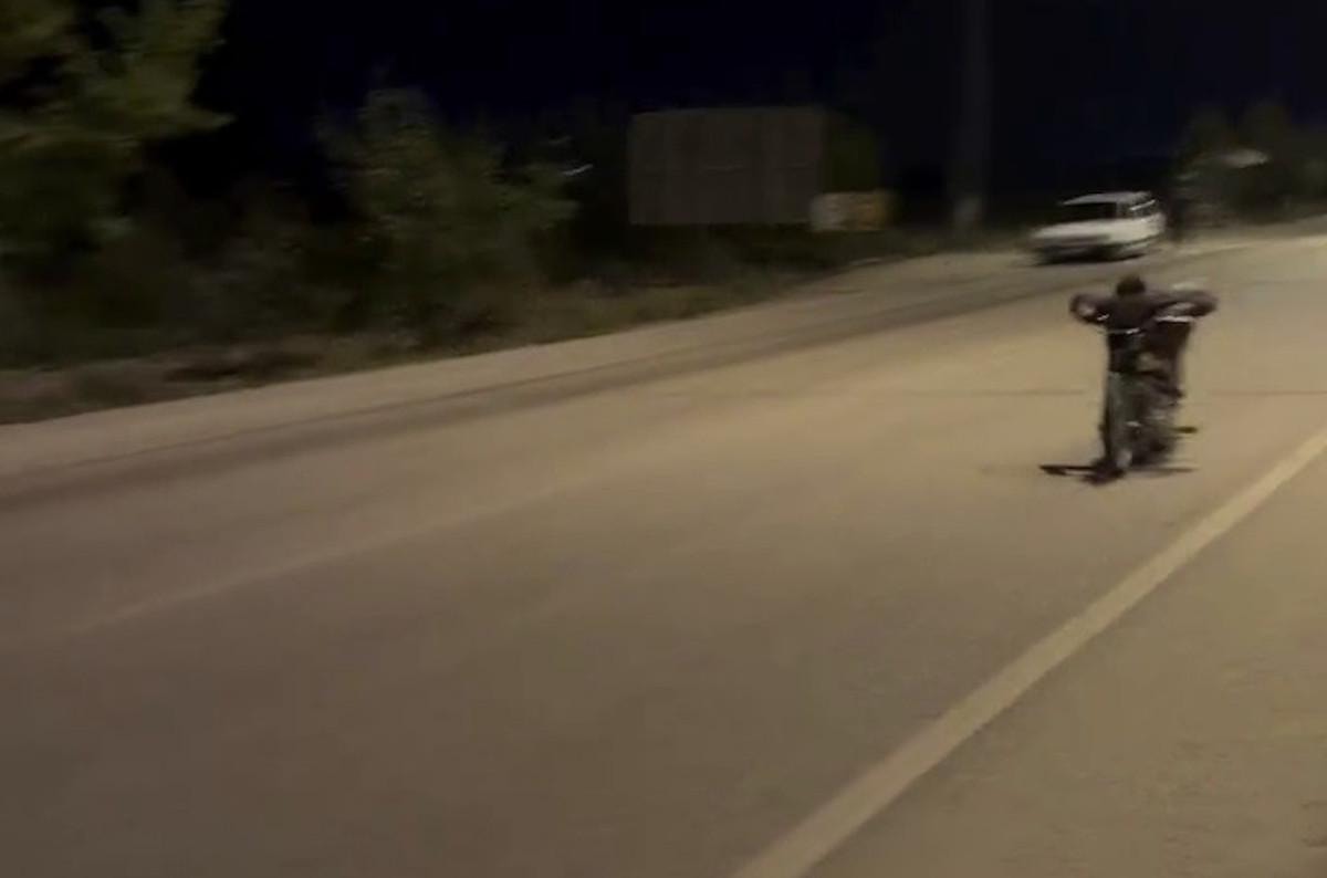 Öte yandan şahsın ehliyetine el konulurken, motosikleti trafikten menedilerek otoparka çekildi ve jandarma ekiplerince 'trafiği tehlikeye sokmak' suçundan adli işlem yapıldı.