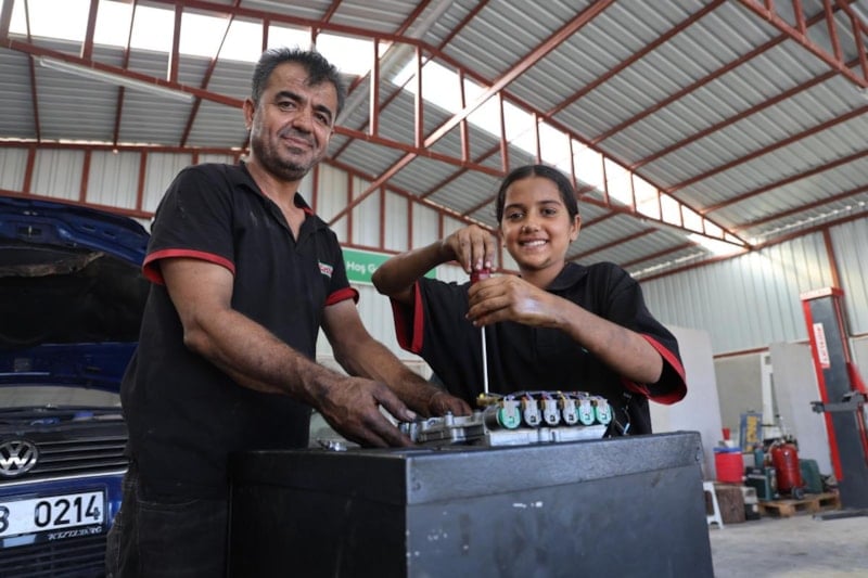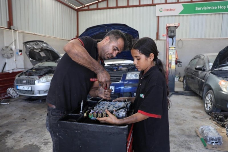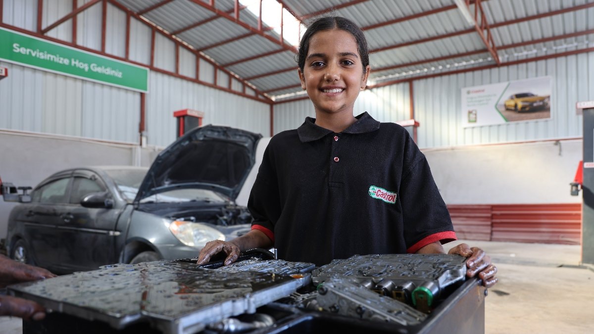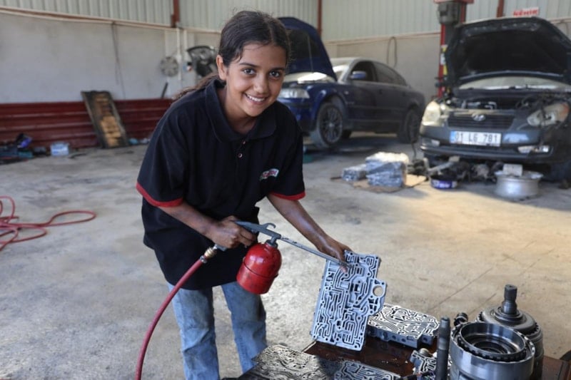 Antakya'da 5 yıl önce babasının oto tamir dükkanında çalışmaya başlayan 13 yaşındaki Nehir Habiboğlu birçok tamir işini yapabildiğini belirterek, 'Diğer çocuklar oyunlar oynasın, ben işimdeyim' dedi.