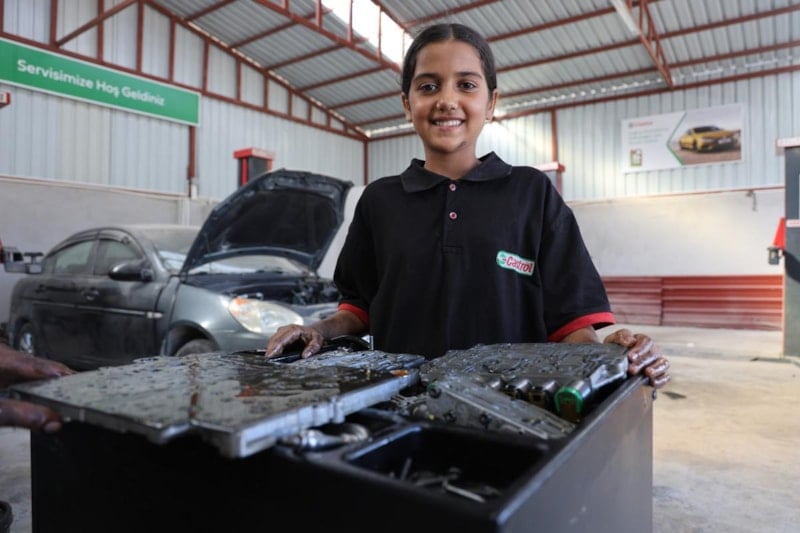 5 yıldır babasına ait olan oto bakım servisinde bıkmadan usanmadan mesai yapan 13 yaşındaki Nehir usta, babasından öğrendiği mesleğinde kendini geliştirdi.