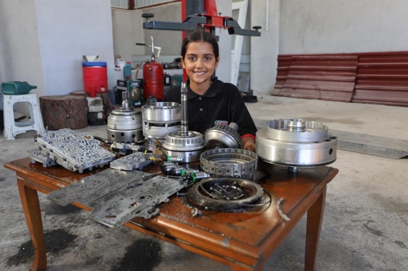 Okula sabahtan öğlene kadar gidiyor sonra da yanıma geliyor. Kızımın işinden çok memnunum. Balata değişimleri ve yağ bakımlarını yapıyor. Müşterilerim onu görmek için geliyorlar ve müşteri potansiyeli var.