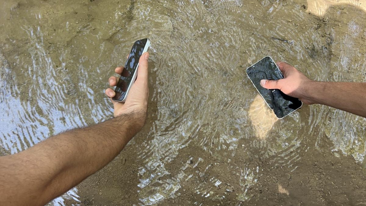 Telefonun soğumasıyla birlikte cihazın sorunsuz çalıştığını belirten Adıkutlu, "Havalar aşırı sıcak, telefon da çok çabuk ısınıyor. Biz de çözümü suda bulduk. Şu anda hava 44 derece, hissedilen sıcaklık ise 49 dereceydi. Telefonu suya koyduk, hem soğudu hem de tertemiz oldu. Herhangi bir sorun yaşamadık" dedi.