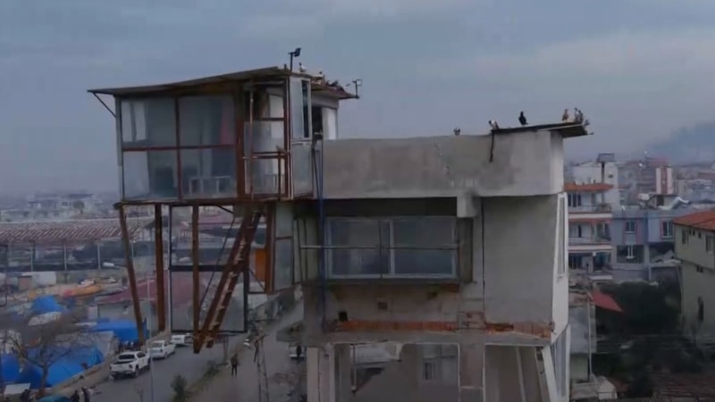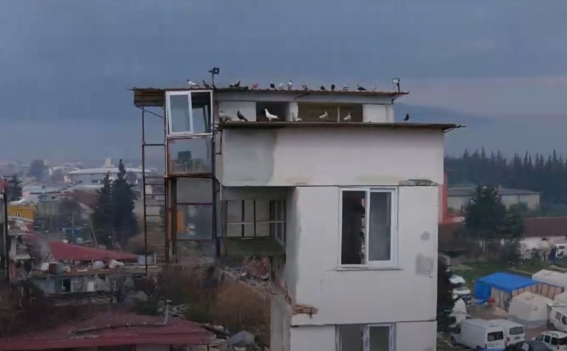 Antakya'nın Narlıca Mahallesi Atatürk Caddesi'nde bulunan 4 katlı bina yıkılırken, 3 yıl önce yapılan ek yapıdaki güvercin evi ayakta kaldı.