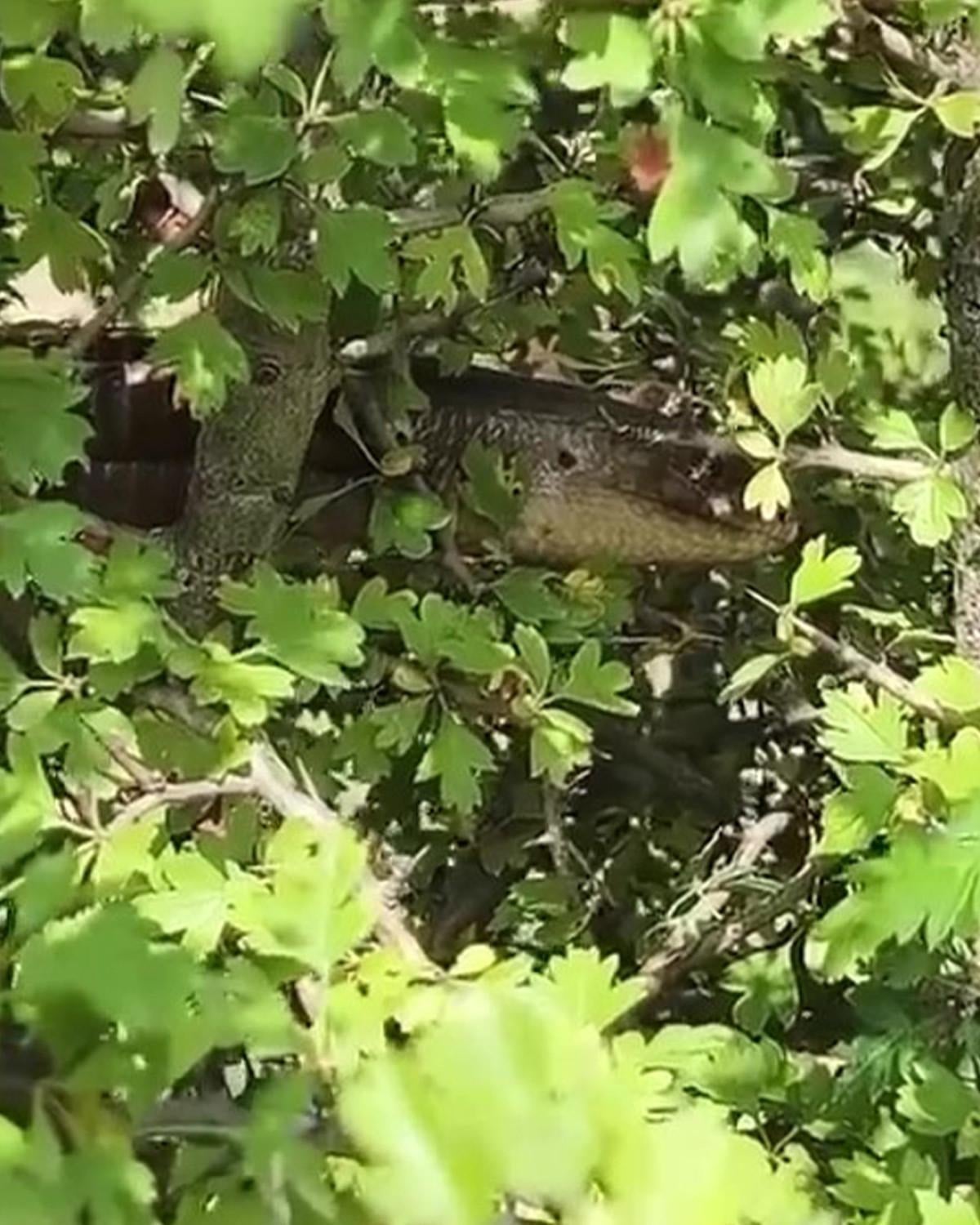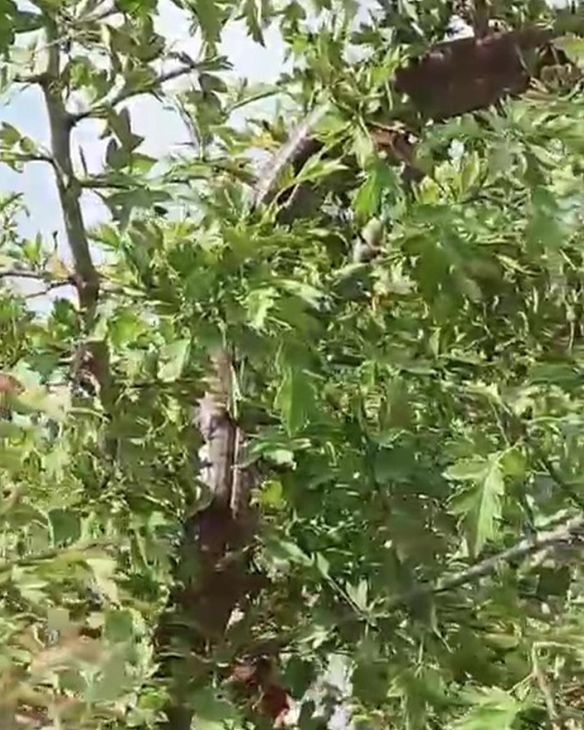 Zaten hiçbir hayvanın kimseye zararı yok, yeter ki canına kastedilmesin. Yaklaşık 1,5 metre civarındaydı. Yemişken dediğimiz ağacın üzerindeydi. Hatta video çekmesi için oğluma söyledim, çubukla dikkatini çekti.
