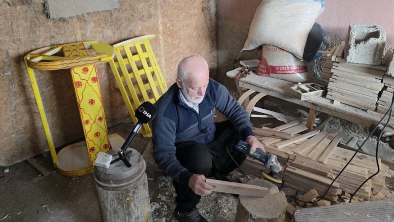 Hassa ilçesi Katranlık Mahallesi'nde yaşayan 75 yaşındaki Ömer Solak, tahta beşik yapımını babasından öğrendi ve ömrünü adadı.