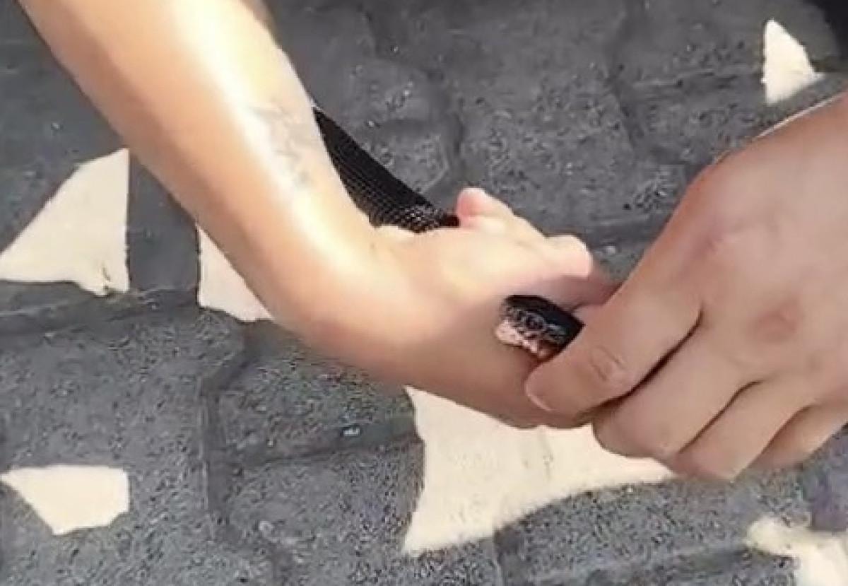 Yılanı doğaya salmadan önce kameralar karşısında doğal yaşamla ilgili bilgi ve uyarılar yapan Başer, bu sırada beklenmedik bir olay yaşadı.