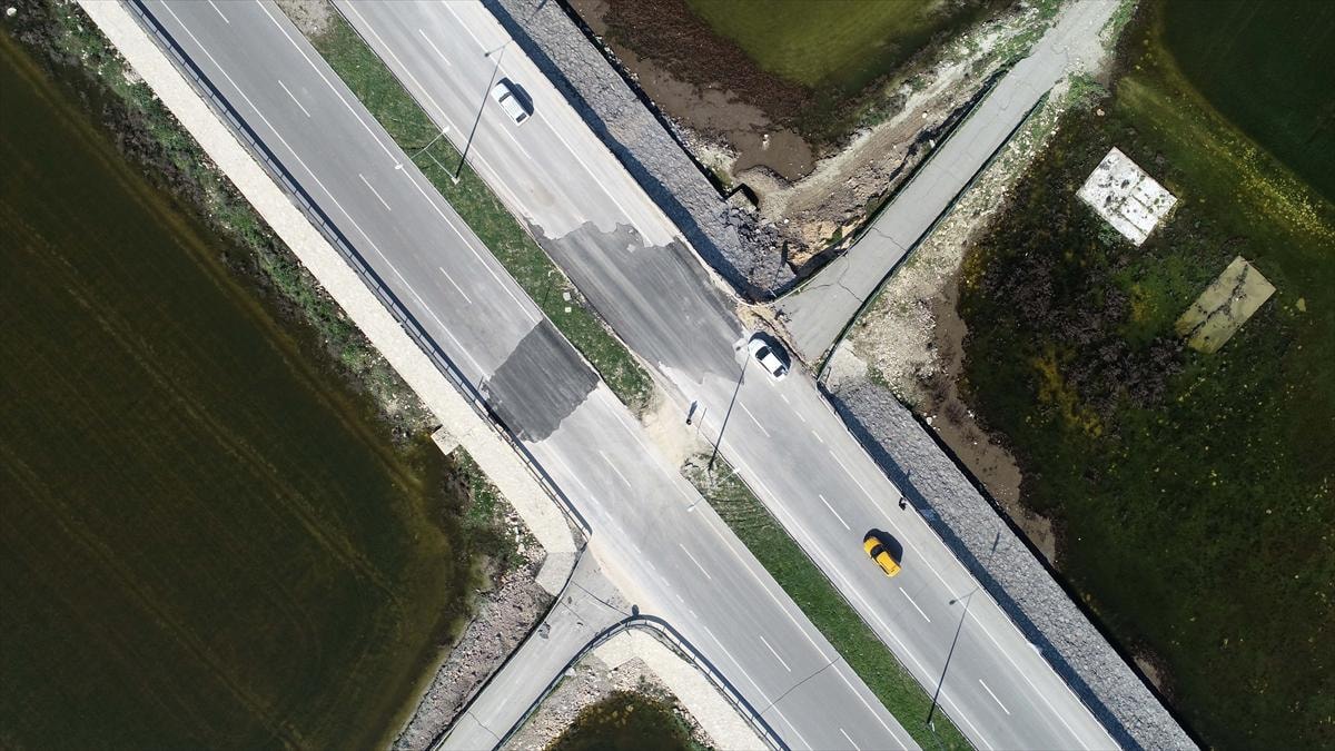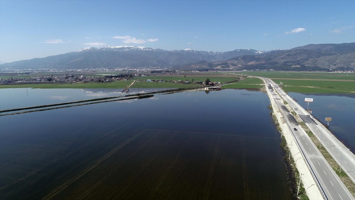 Su baskını yaşanan bölge, dronla görüntülendi.